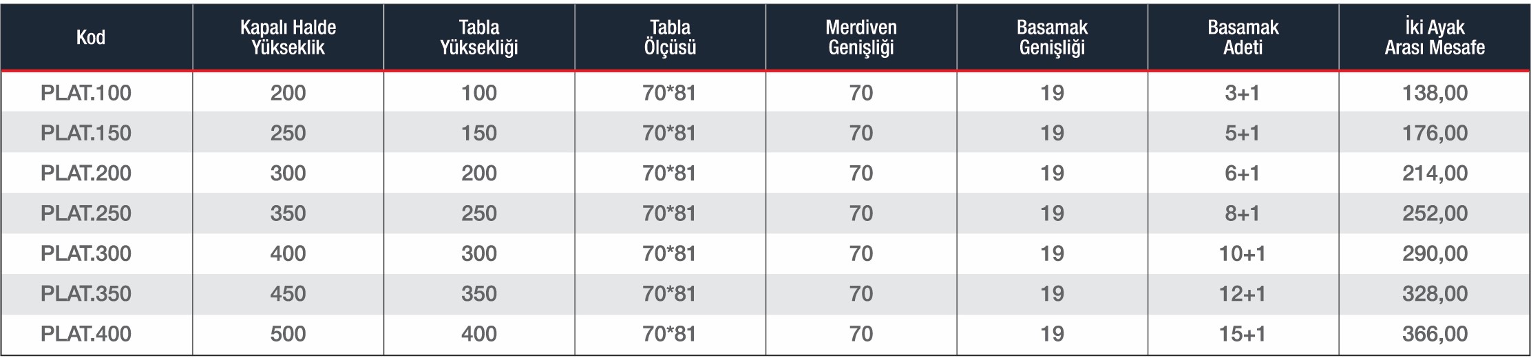 • Standart ölçüler dışında ihtiyaç duyulan yükseklikte ve platform ölçülerinde üretim imkanı.