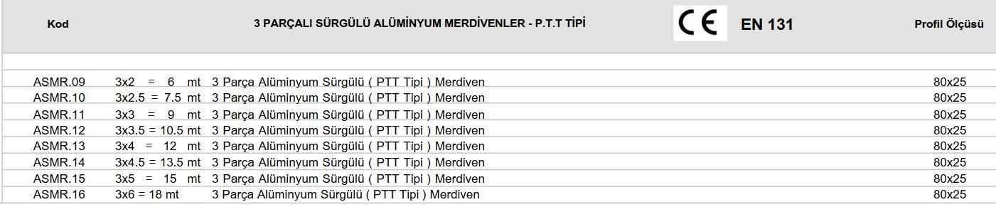 Üç Parçalı Alüminyum Merdiven (PTT), dayanıklı alüminyum malzemeden üretilmiş, hem düz hem de A tipi olarak kullanılabilen, portatif ve çok amaçlı bir merdiven modelidir.